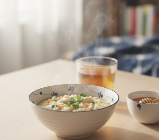 - 단백질 보충 식품: 닭고기, 생선, 두부, 계란 등. 몸의 회복과 면역 세포 생성에 도움을 줍니다. 부드러운 죽 형태로 섭취하면 좋아요.