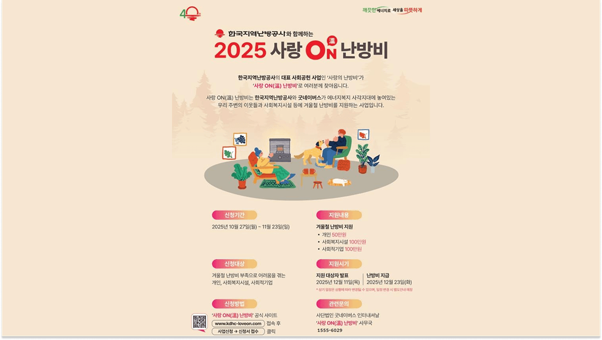 - ✔️ 사랑온 난방비 지원금은 2025년 겨울철, 최대 50만원까지 취약계층의 난방비 부담을 덜어주는 제도입니다.